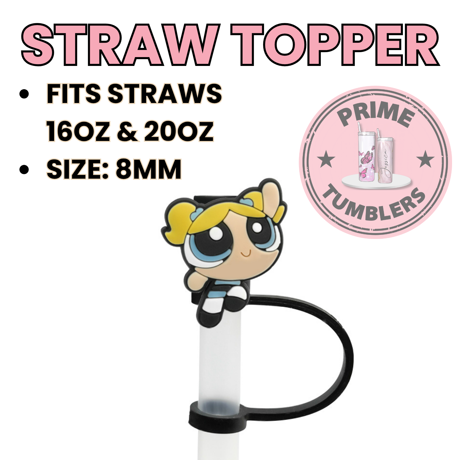Bubbles Powerpuff girls size 8MM Straw Topper