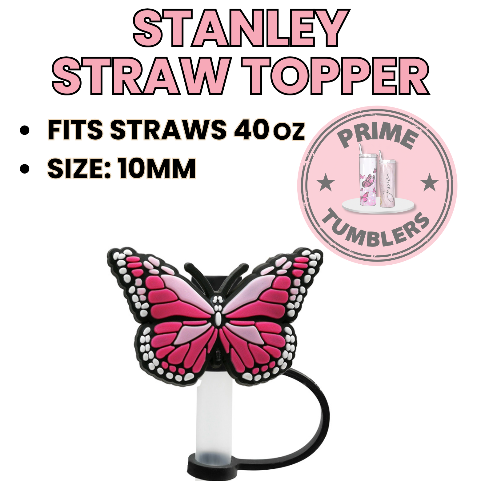 BUTTERFLY pink 40oz Straw Toppers