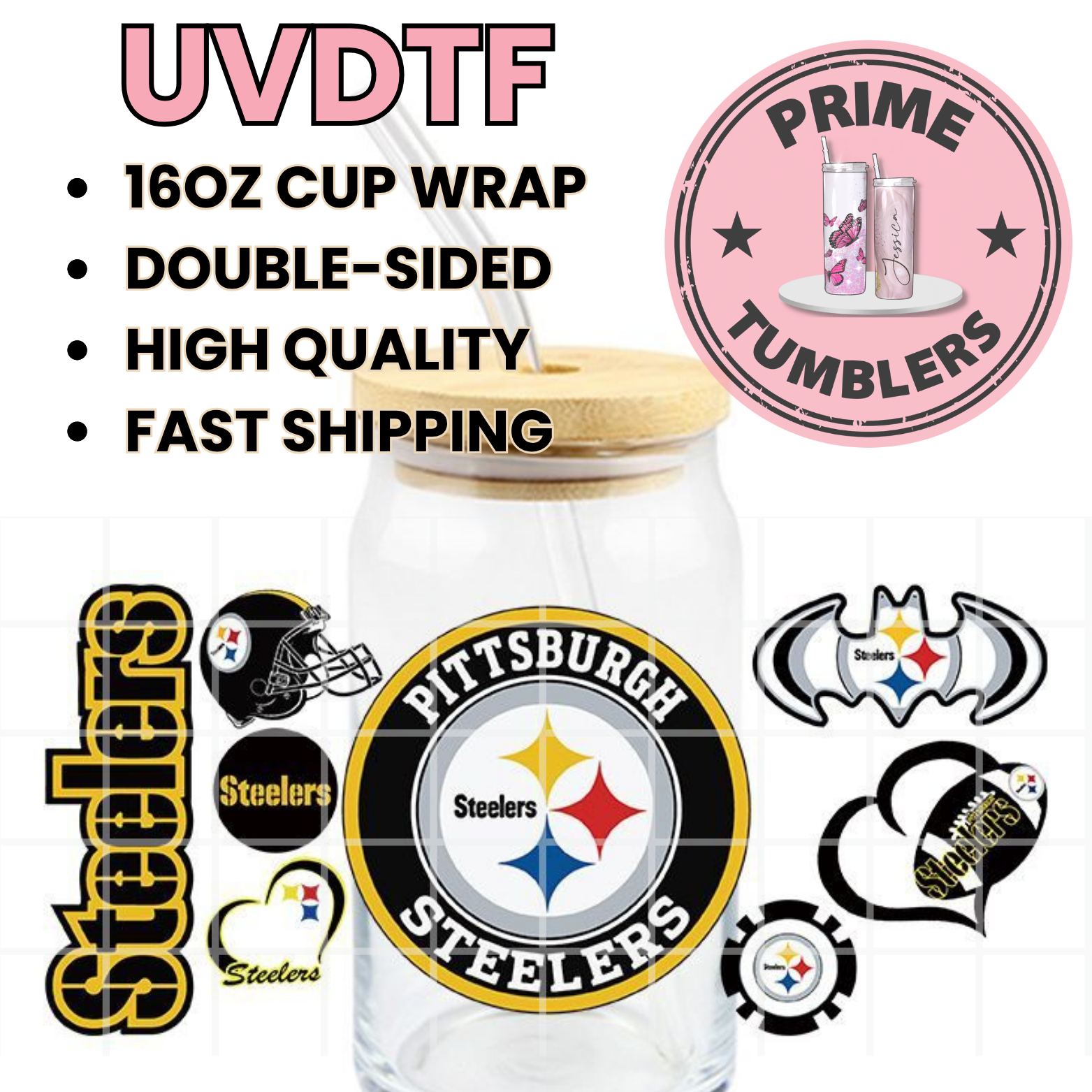 Pittsburgh STEELERS football 16oz UVDTF cup wrap, ready to apply STICKERS