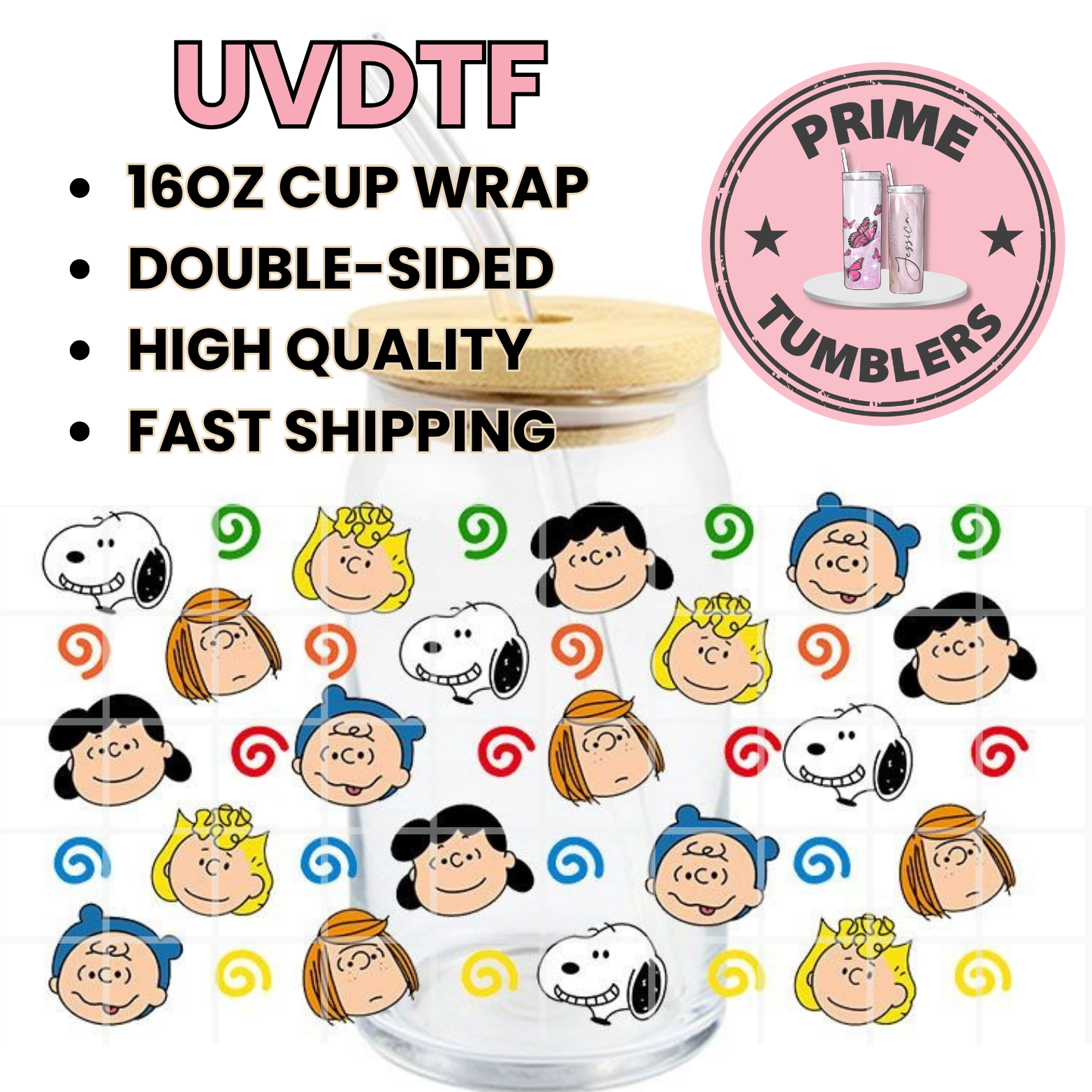 SNOOPY AND friends 16oz UVDTF cup wrap, ready to apply STICKERS