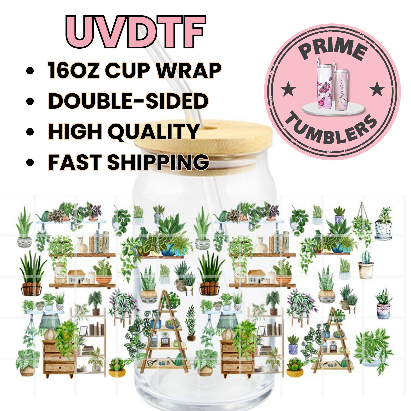 Plants green garden 16oz UVDTF cup wrap, ready to apply STICKERS on