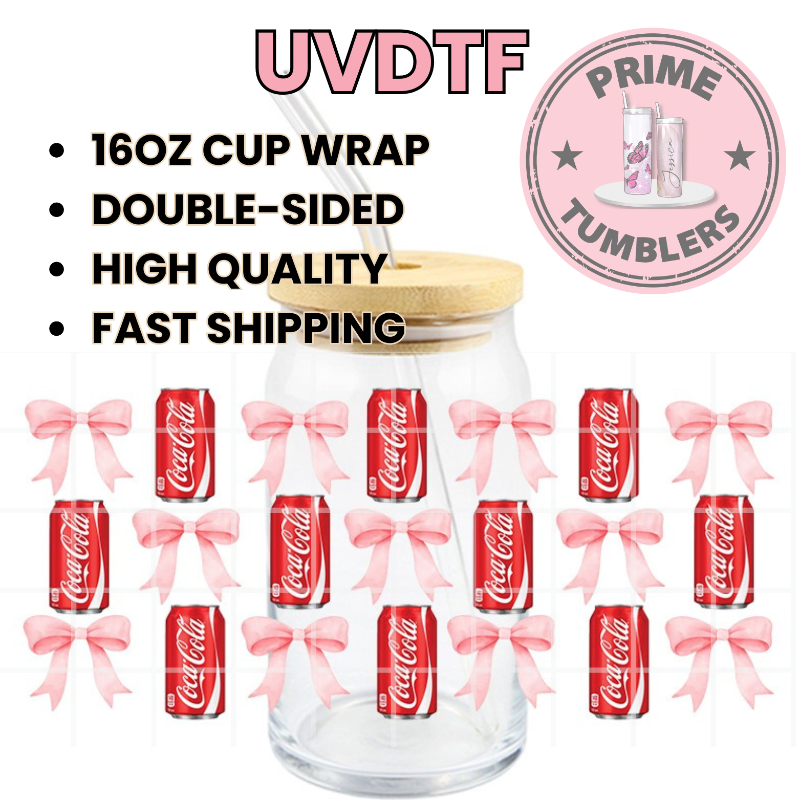 Coca Cola cans and bows 16oz UVDTF cup wrap, ready to apply STICKERS decals pink red