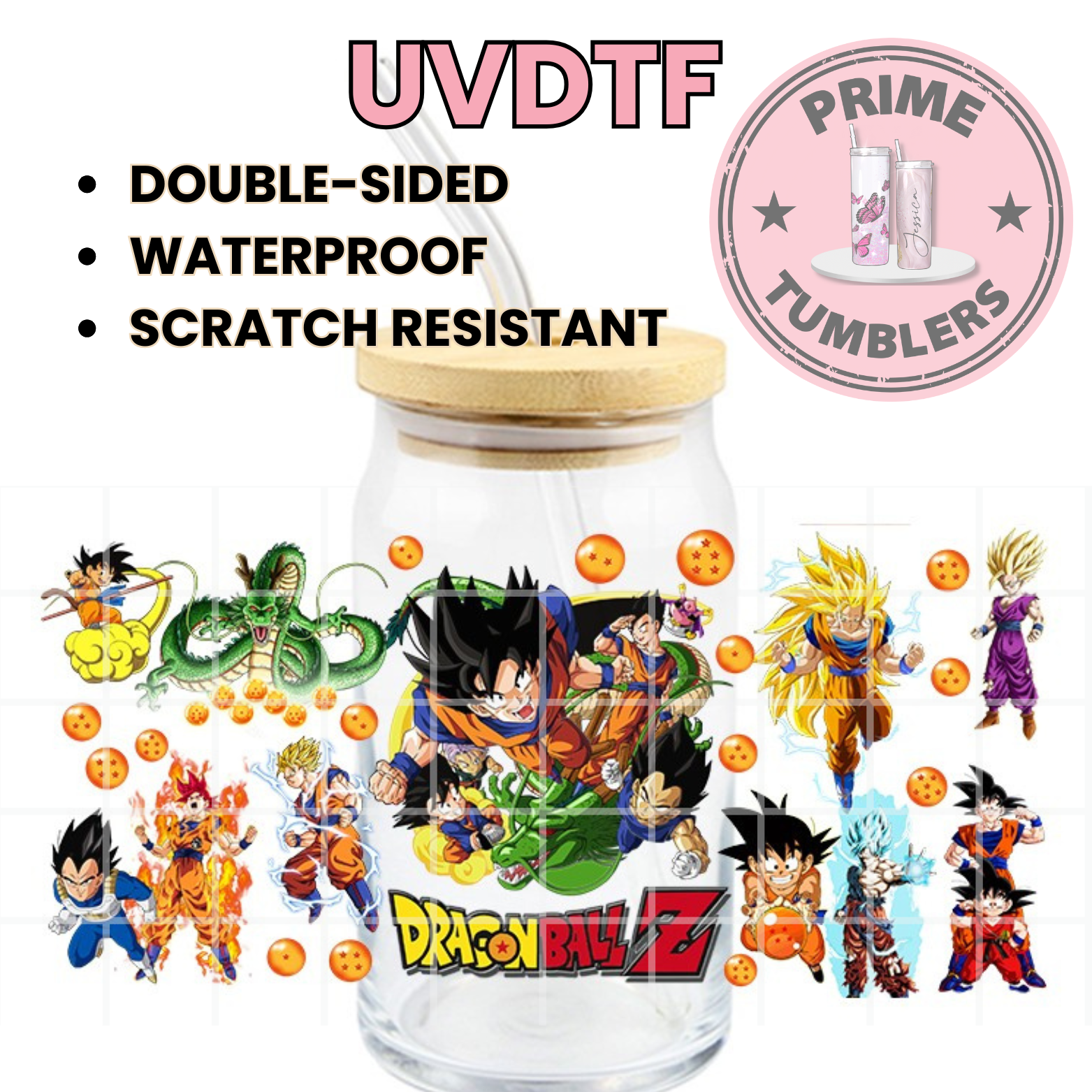 Dragon Ball Z Ready-to-press UVDTF Transfers, Cup wrap decals, Tumbler prints, 16oz Libbey Glass UV STICKERS DBZ Shenron, Goku, Vegeta, Gohan, and Piccolo