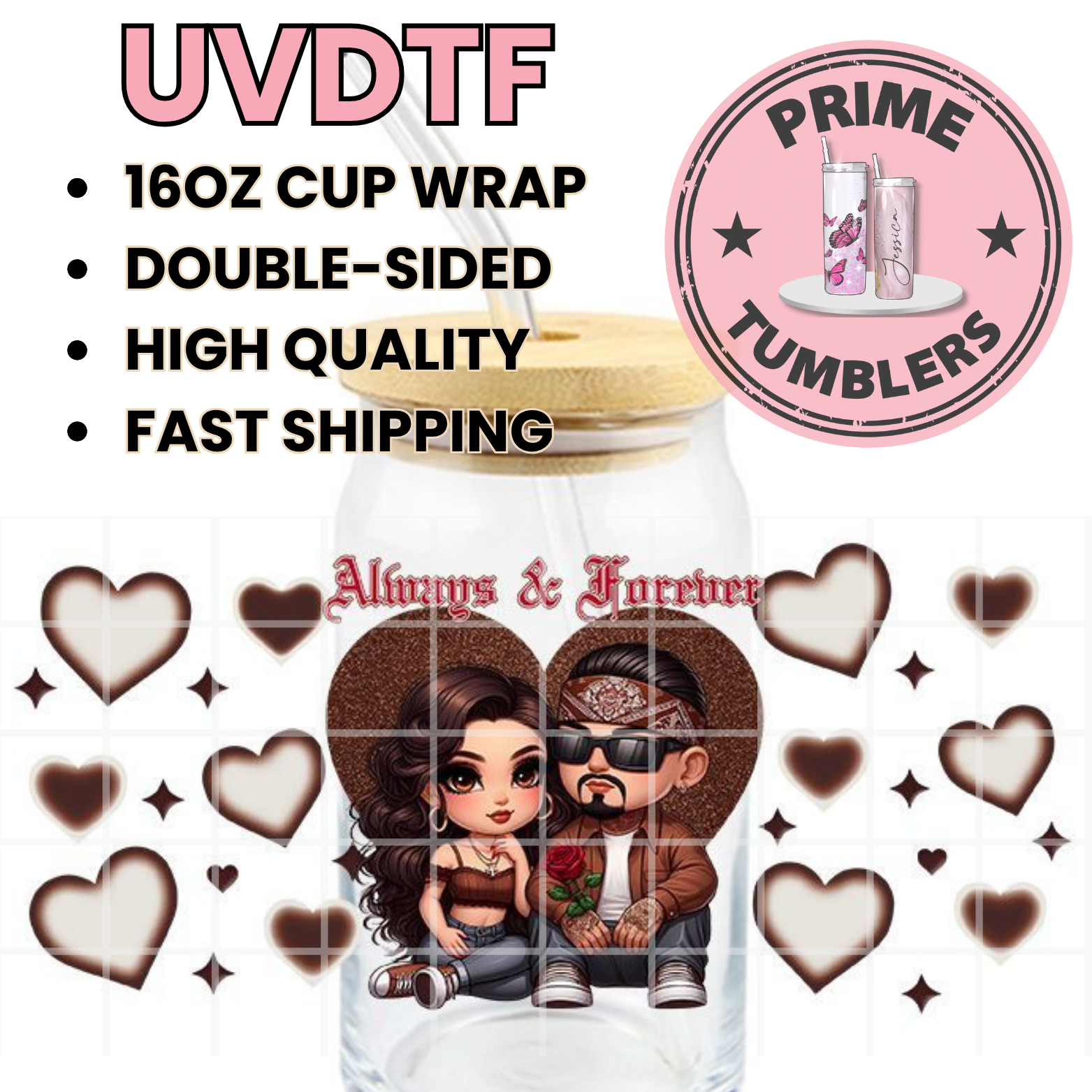 Cholo Couple Always & Forever 16oz UVDTF cup wrap, ready to apply STICKERS