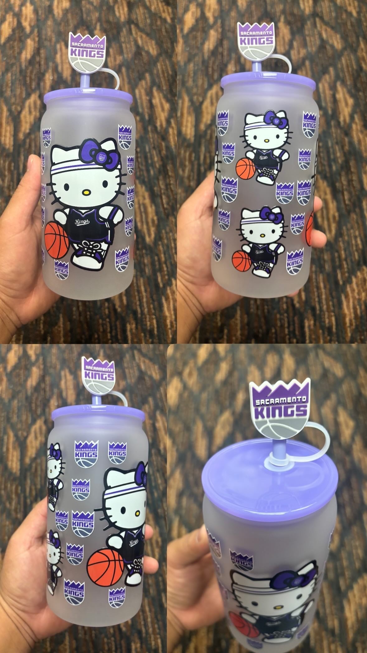 Libbey glass can decorated with UVDTF transfer comes with plastic and glass straw and a Straw topper