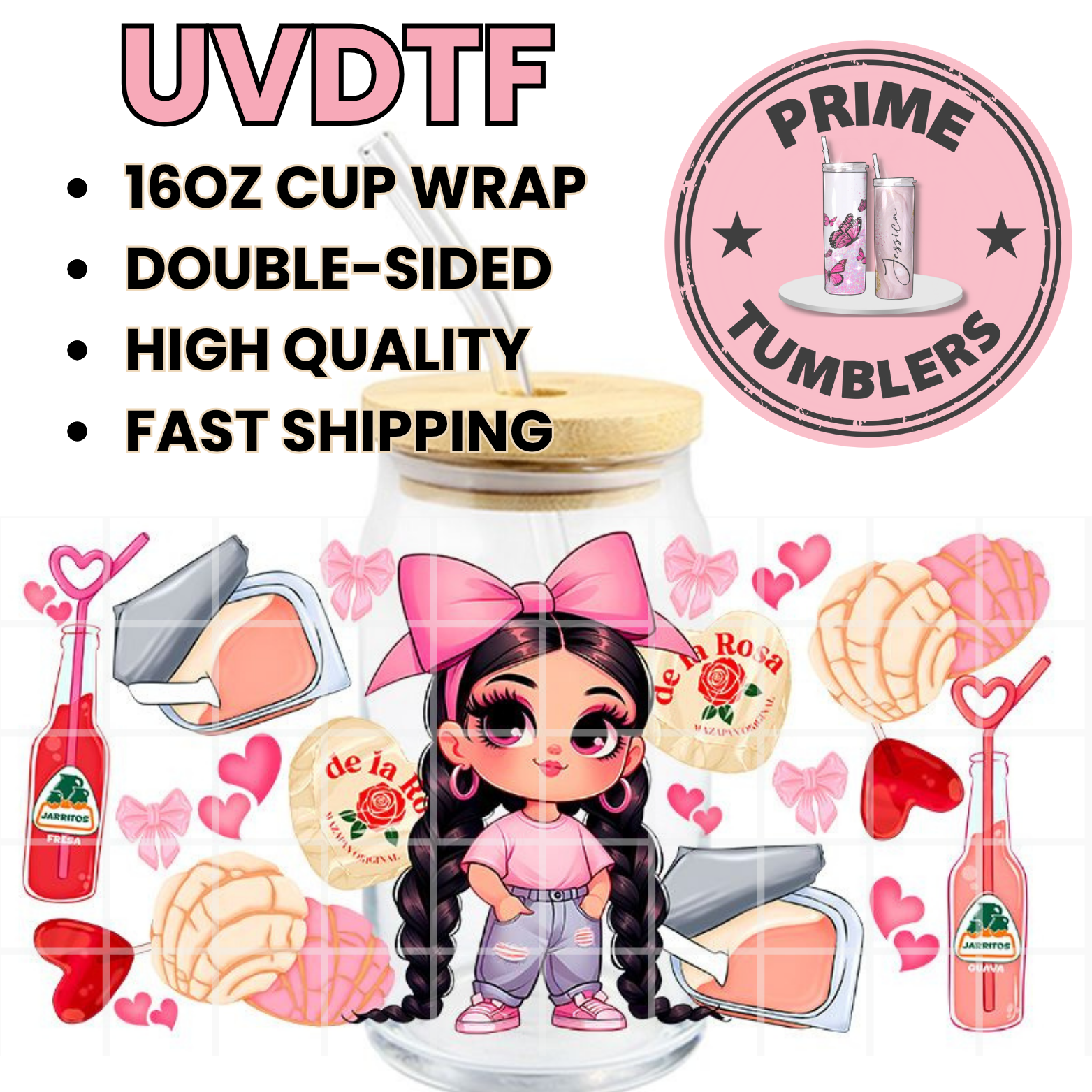 Girl Bow SNACK Mexico long 16oz UVDTF cup wrap, ready to apply STICKERS