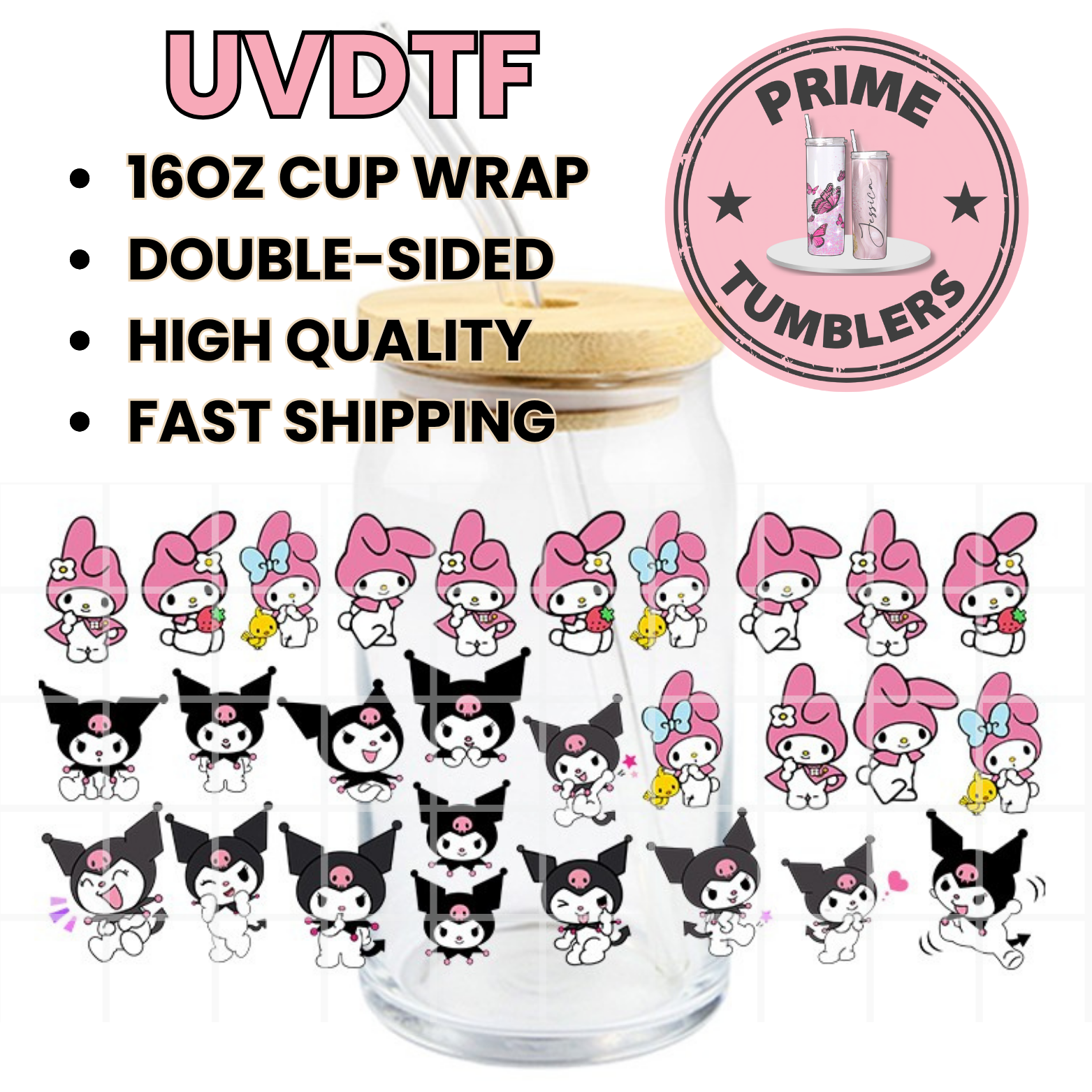 My MELODY and KUROMI 16oz UVDTF cup wrap, ready to apply STICKERS