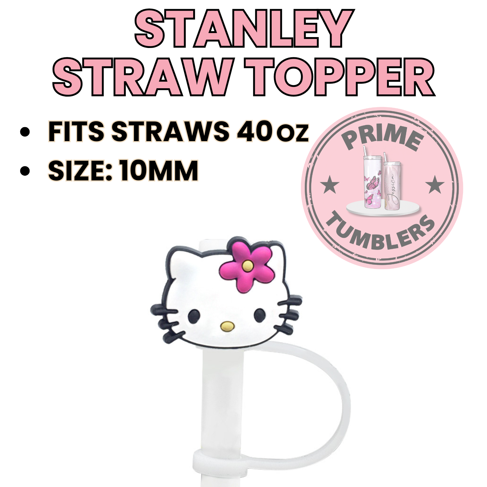 Hello Kitty flower head 40oz Straw Toppers