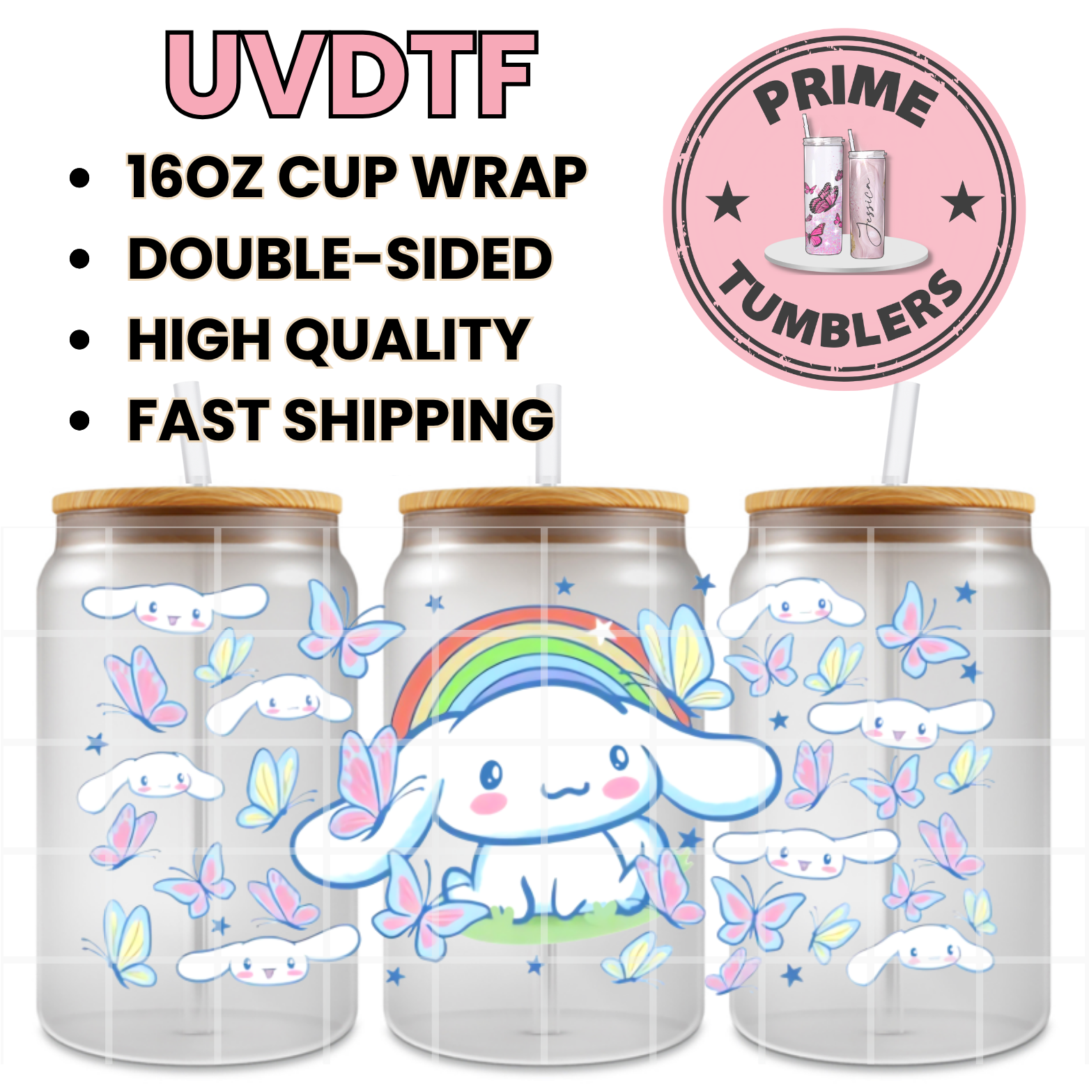 Sanrio Cinnamonroll 16oz UVDTF cup wrap, ready to apply STICKERS