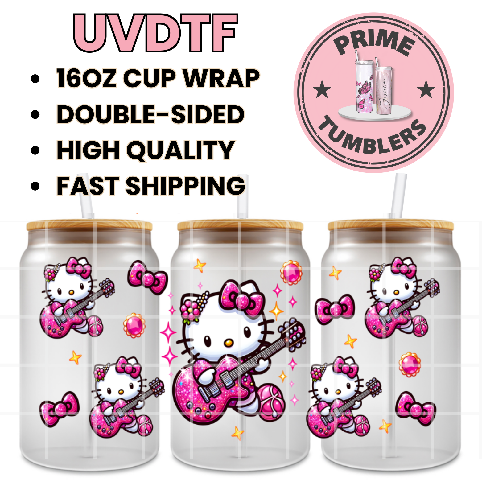Hello Kitty guitar HK 16oz UVDTF cup wrap, ready to apply STICKERS