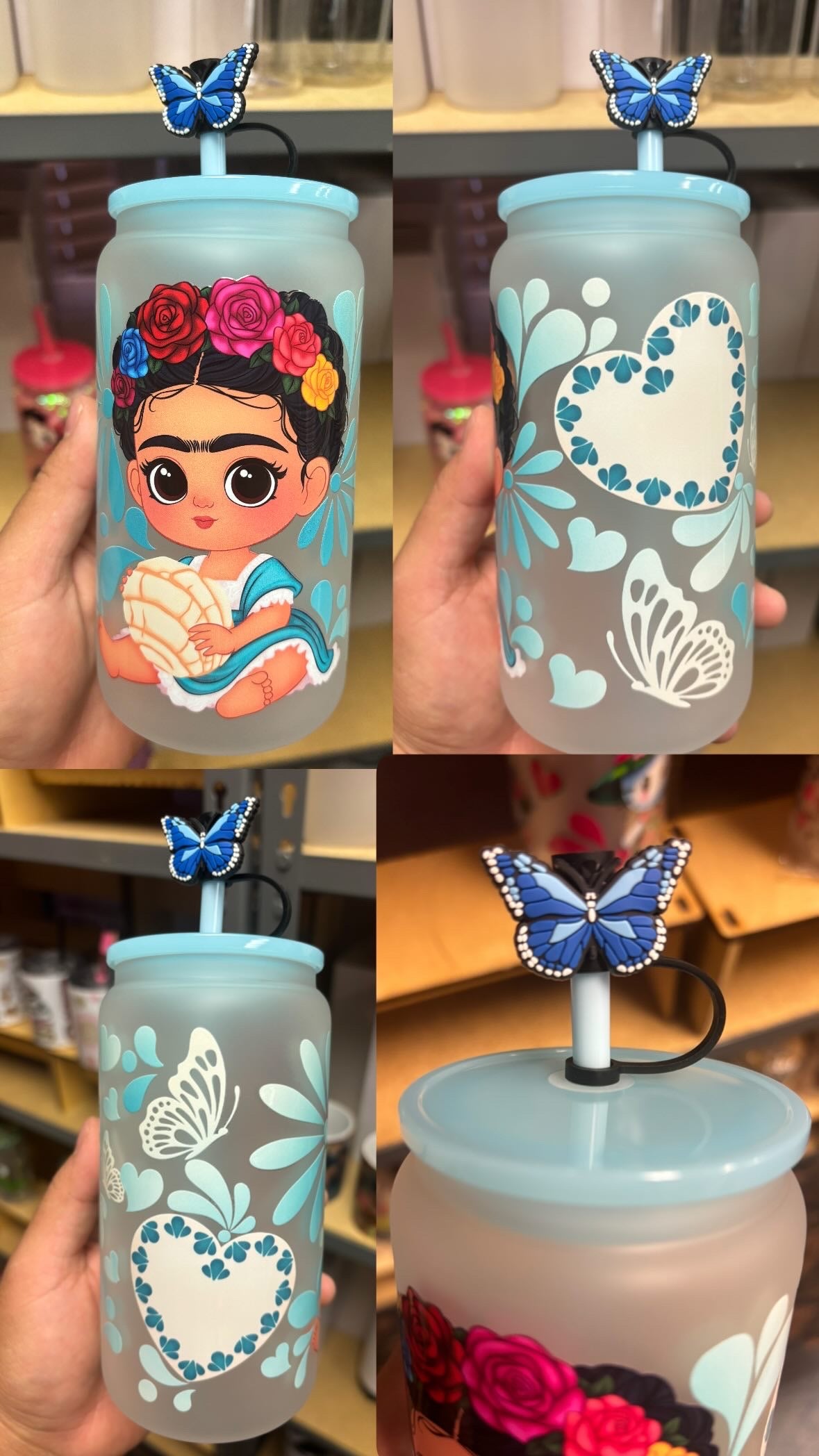 Libbey glass can decorated with UVDTF transfer comes with plastic and glass straw and a Straw topper
