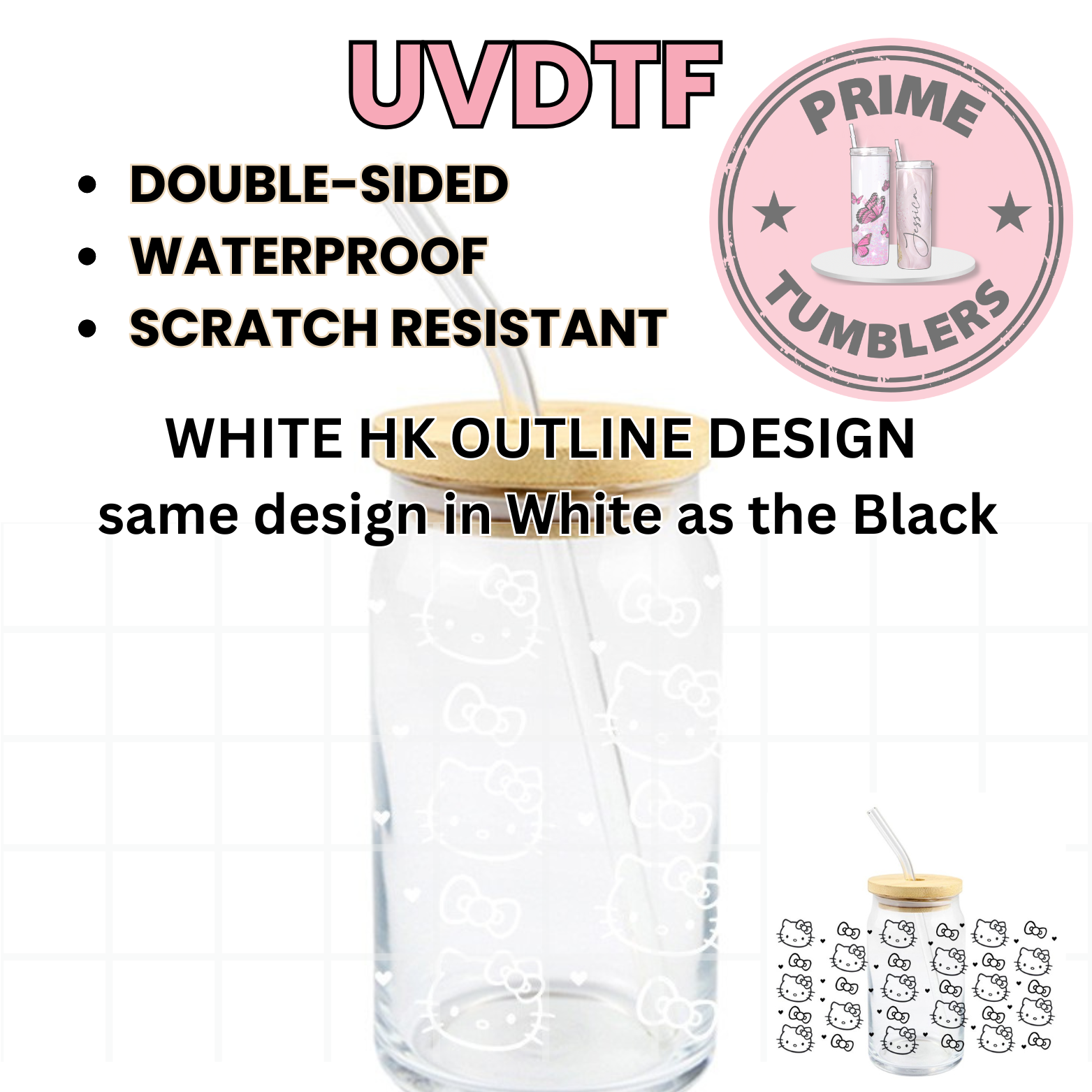Hello Kitty white outline 16oz UVDTF cup wrap, ready to apply STICKERS HK