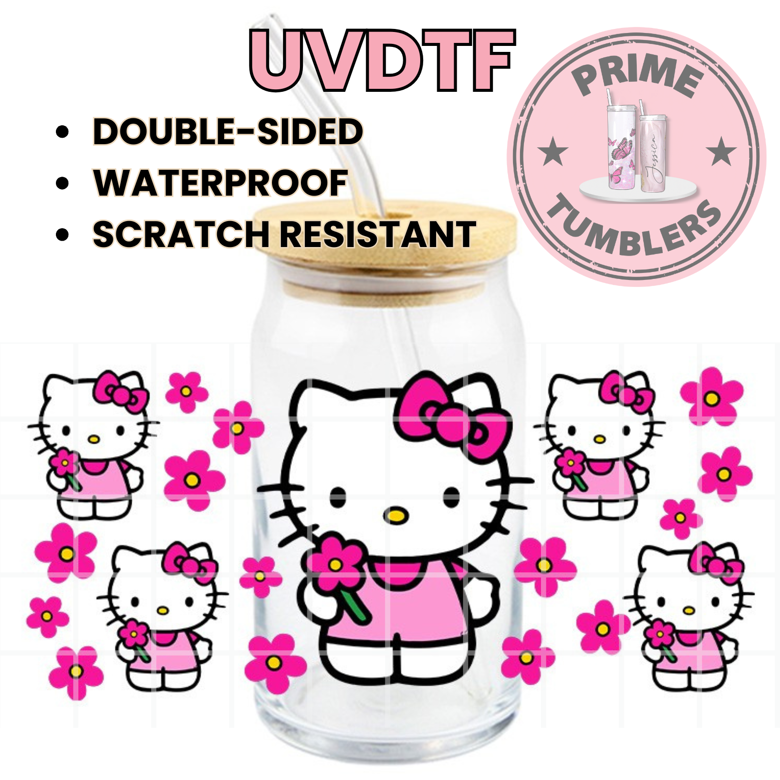 Hello KITTY pink flowers 16oz UVDTF cup decal wrap, ready to apply STICKERS Sanrio