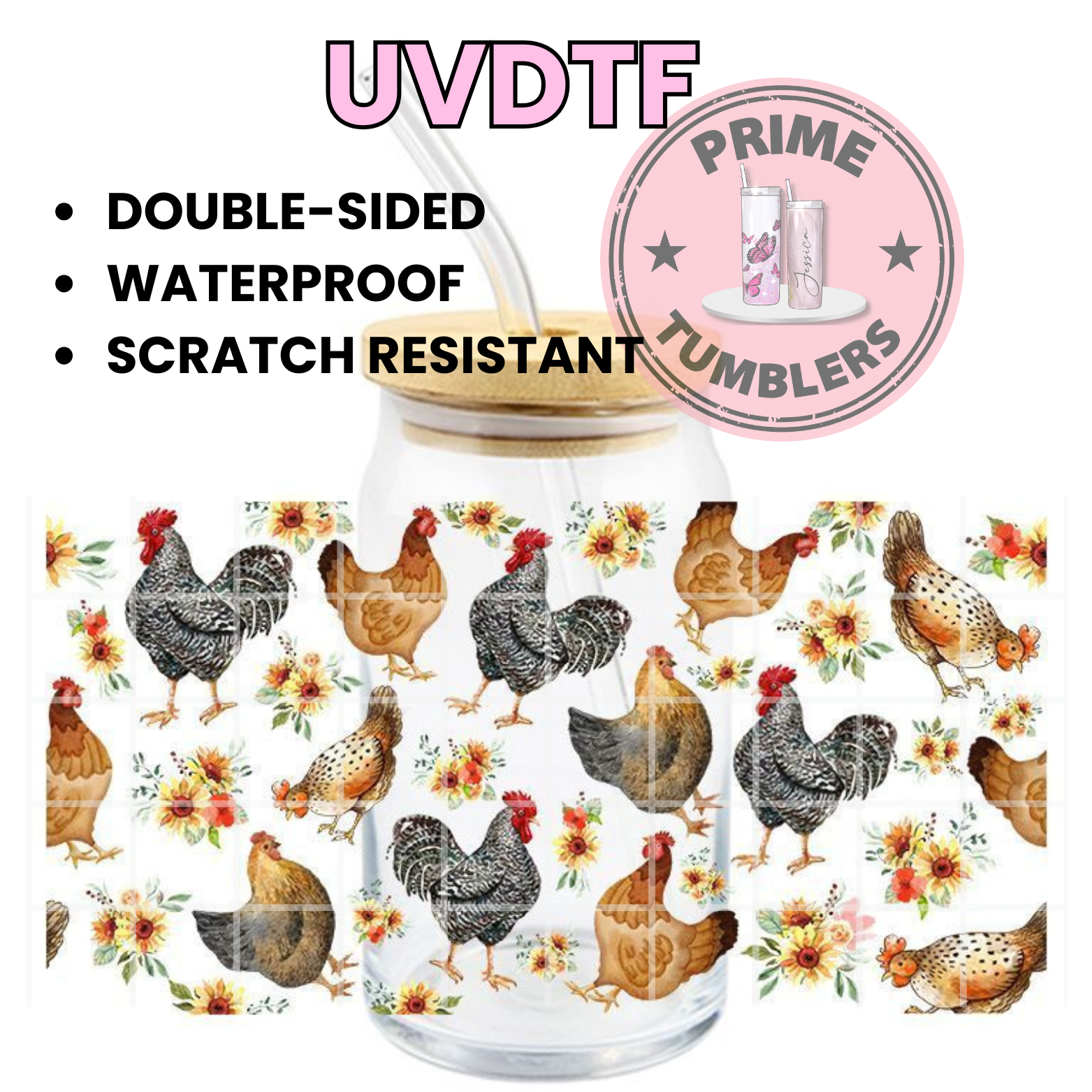 Farm CHICKENS 16oz UVDTF cup wrap, ready to apply STICKERS decal flowers