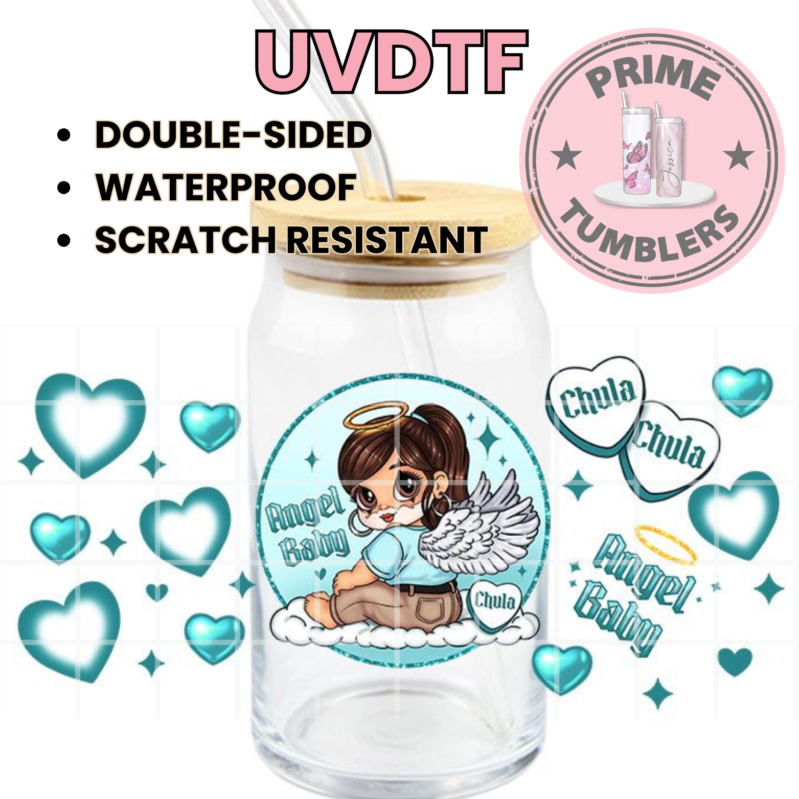 Angel Baby Chula 16oz UVDTF cup wrap, ready to apply STICKERS
