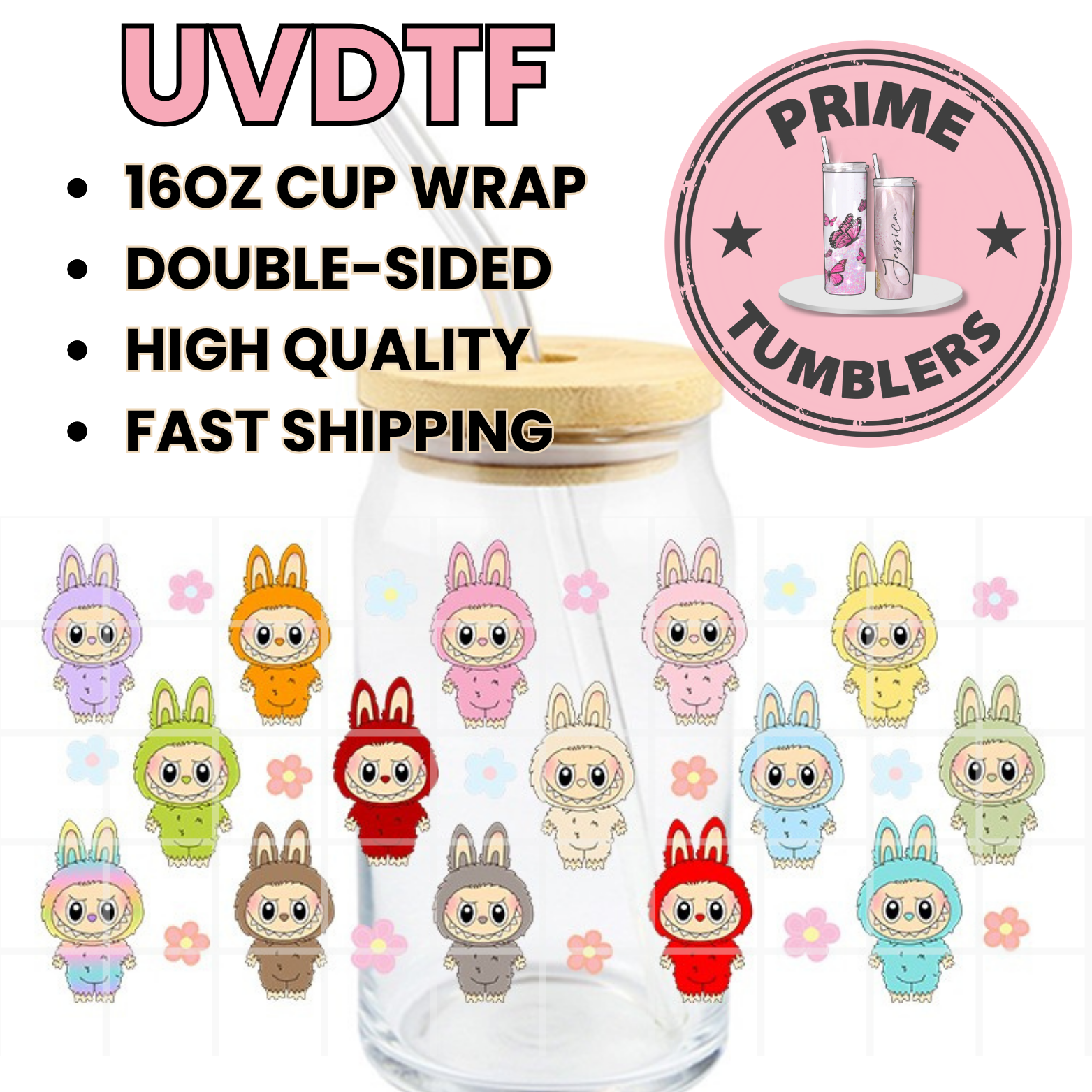 LABUBU flowers 16oz Libbey Glass Cup Wrap UVDTF, Ready to apply decal STICKERS Labubus aesthetic plush dolls The Monsters Pop Mart