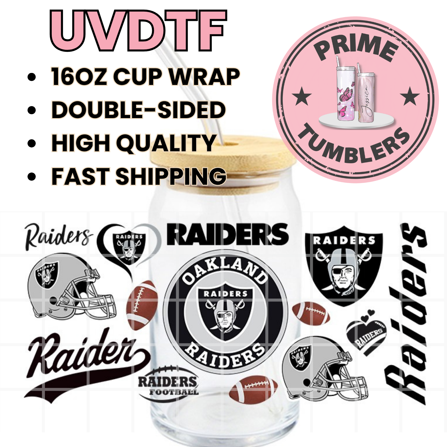 Football RAIDERS heart 16oz UVDTF cup wrap, ready to apply STICKERS