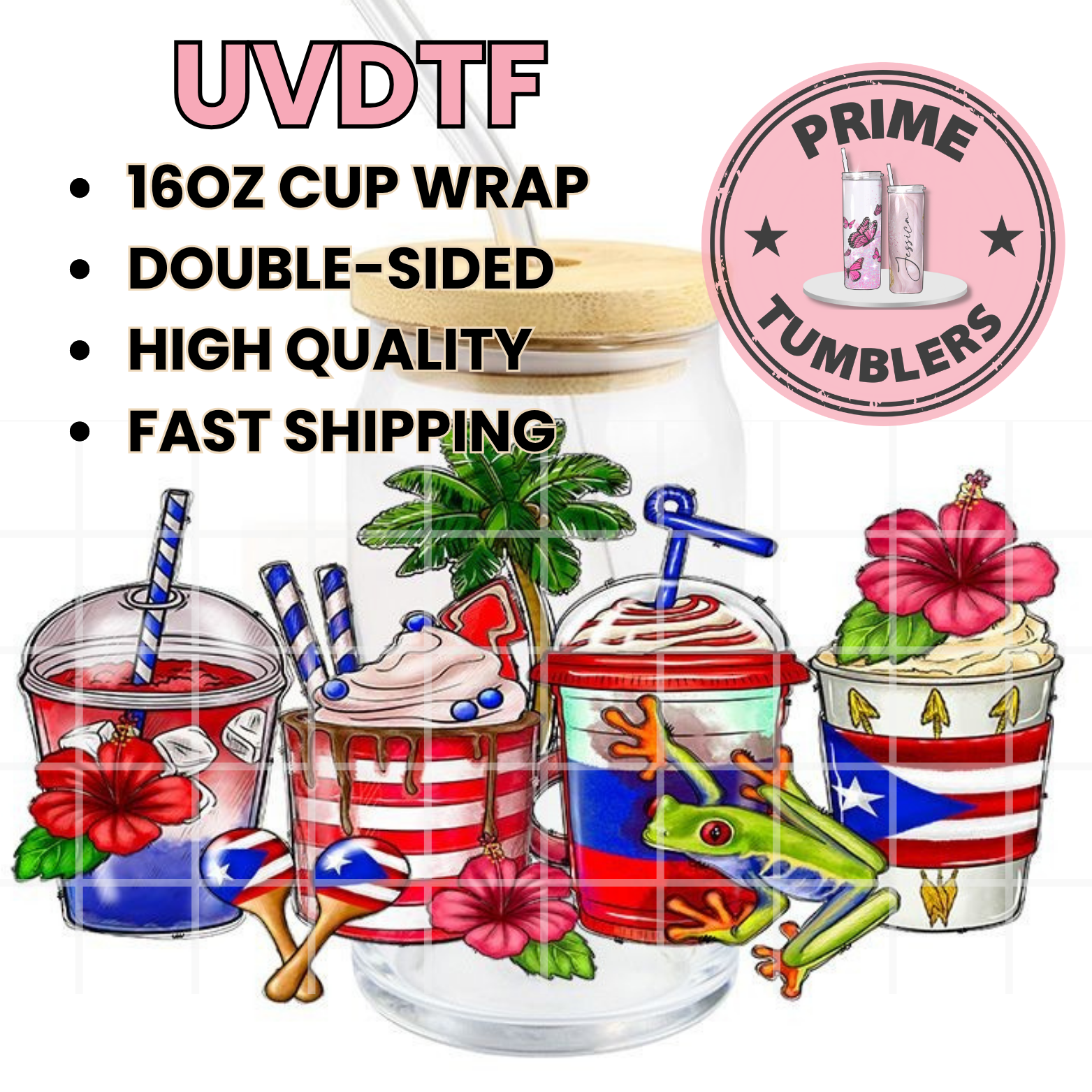 Puerto RICO flag 16oz UVDTF cup wrap, ready to apply STICKERS