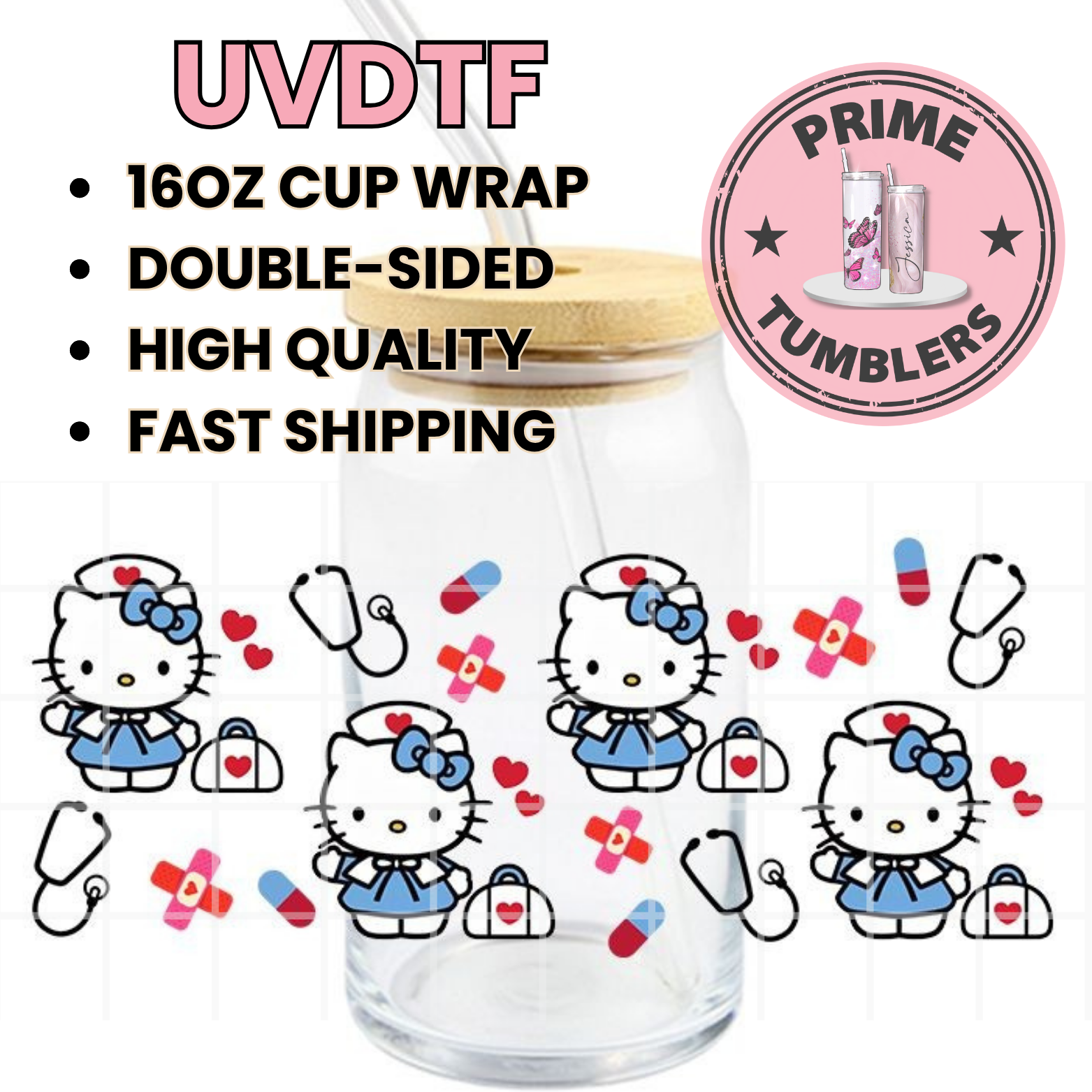 HELLO KITTY Nurse 16oz UVDTF cup wrap, ready to apply STICKERS on
