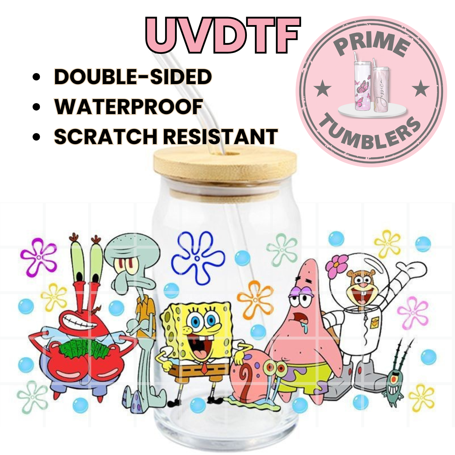 SpongeBob, Patrick Star, Squidward, Mr. Krabs, Gary, Plankton, and Sandy Cheeks 16oz UVDTF cup wrap, ready to apply STICKERS Disney cartoon