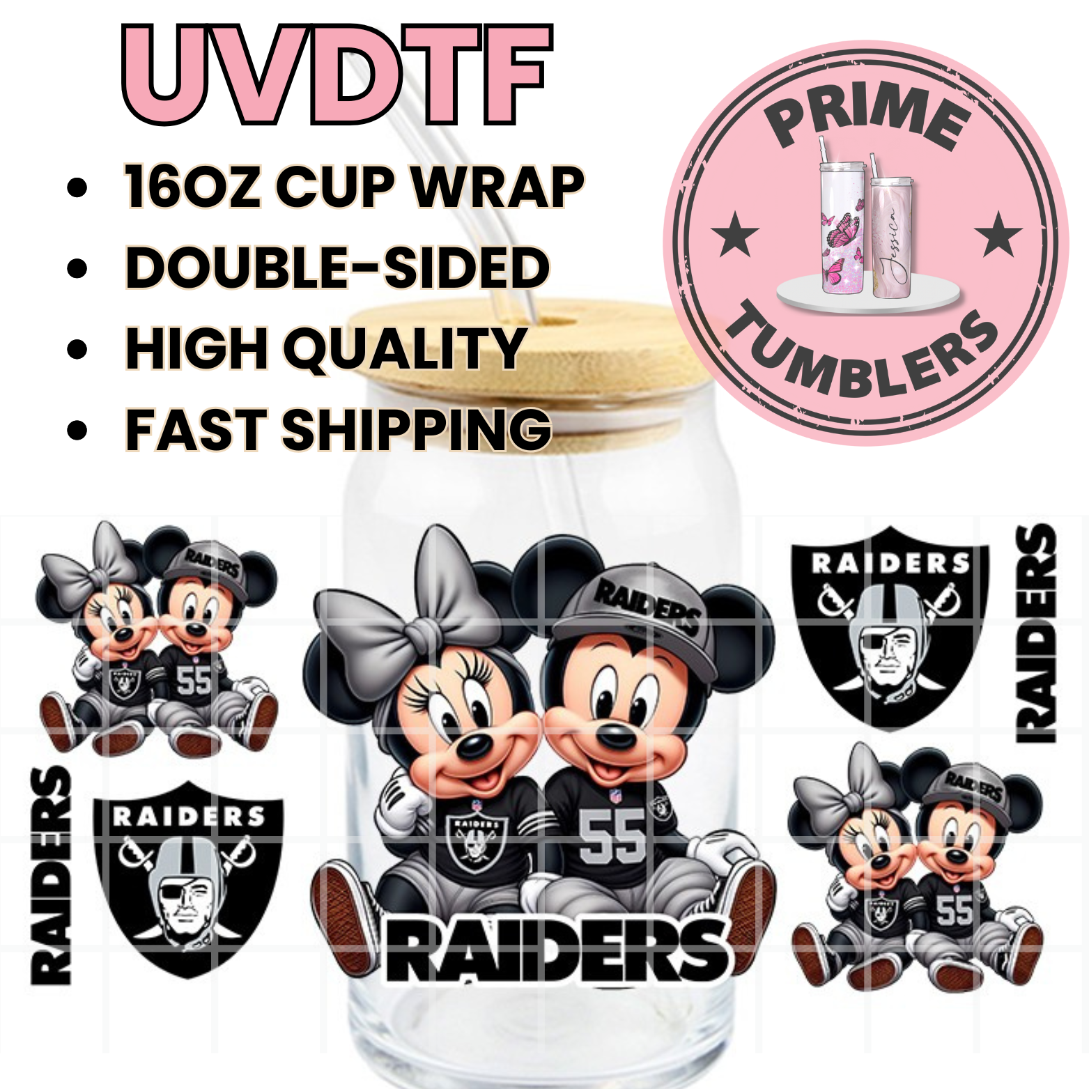 Mickey Mouse RAIDERS coffee 16oz UVDTF cup wrap, ready to apply STICKERS Football