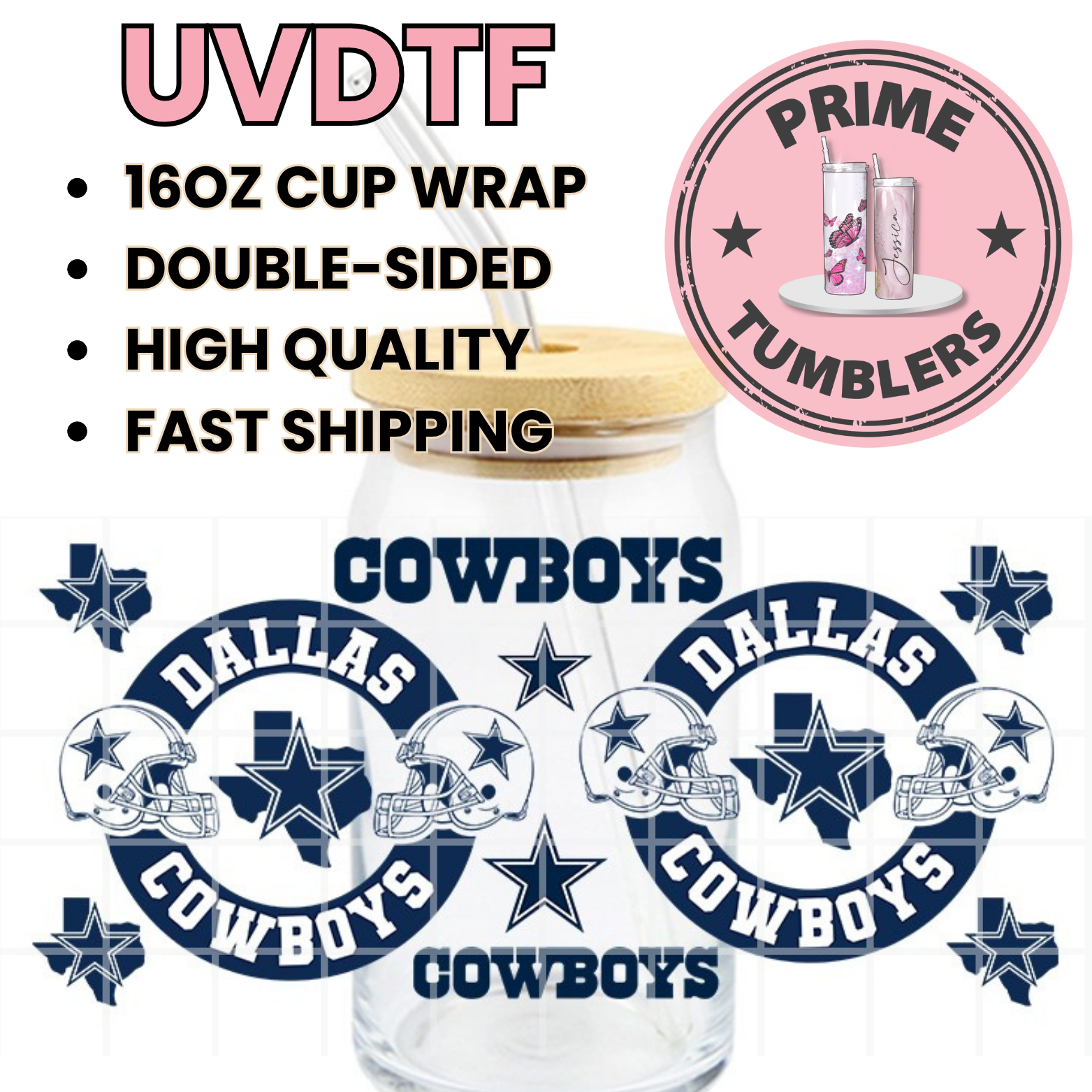 Dallas COWBOYS Football 16oz UVDTF cup wrap, ready to apply STICKERS