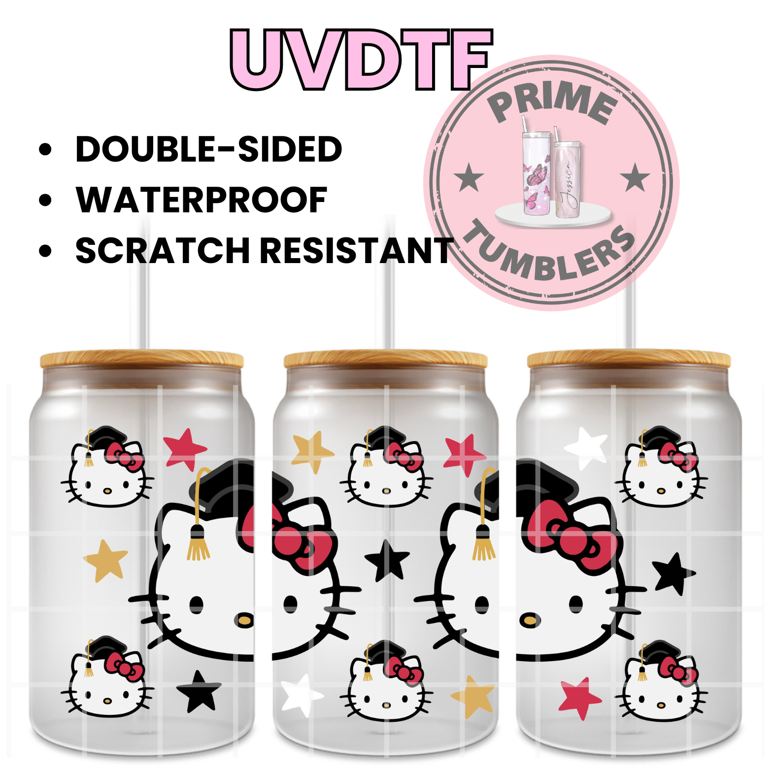 SANRIO Hello Kitty Graduation 16oz UVDTF cup wrap, ready to apply STICKERS HK head