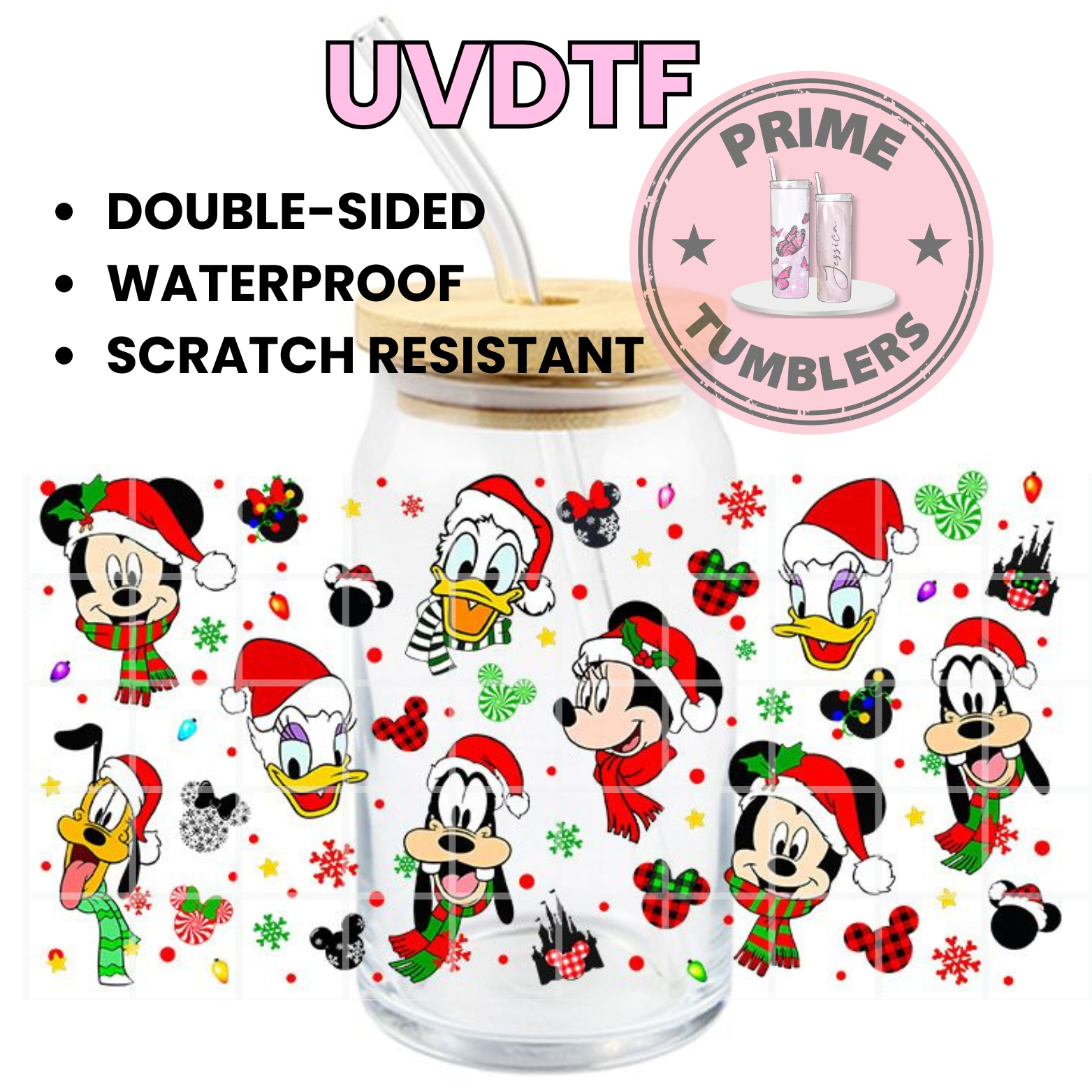 DISNEY Minnie Mouse Mickey Donald Daisy Duck Goofy Characters 16oz UVDTF cup wrap, ready to apply STICKERS CHRISTMAS