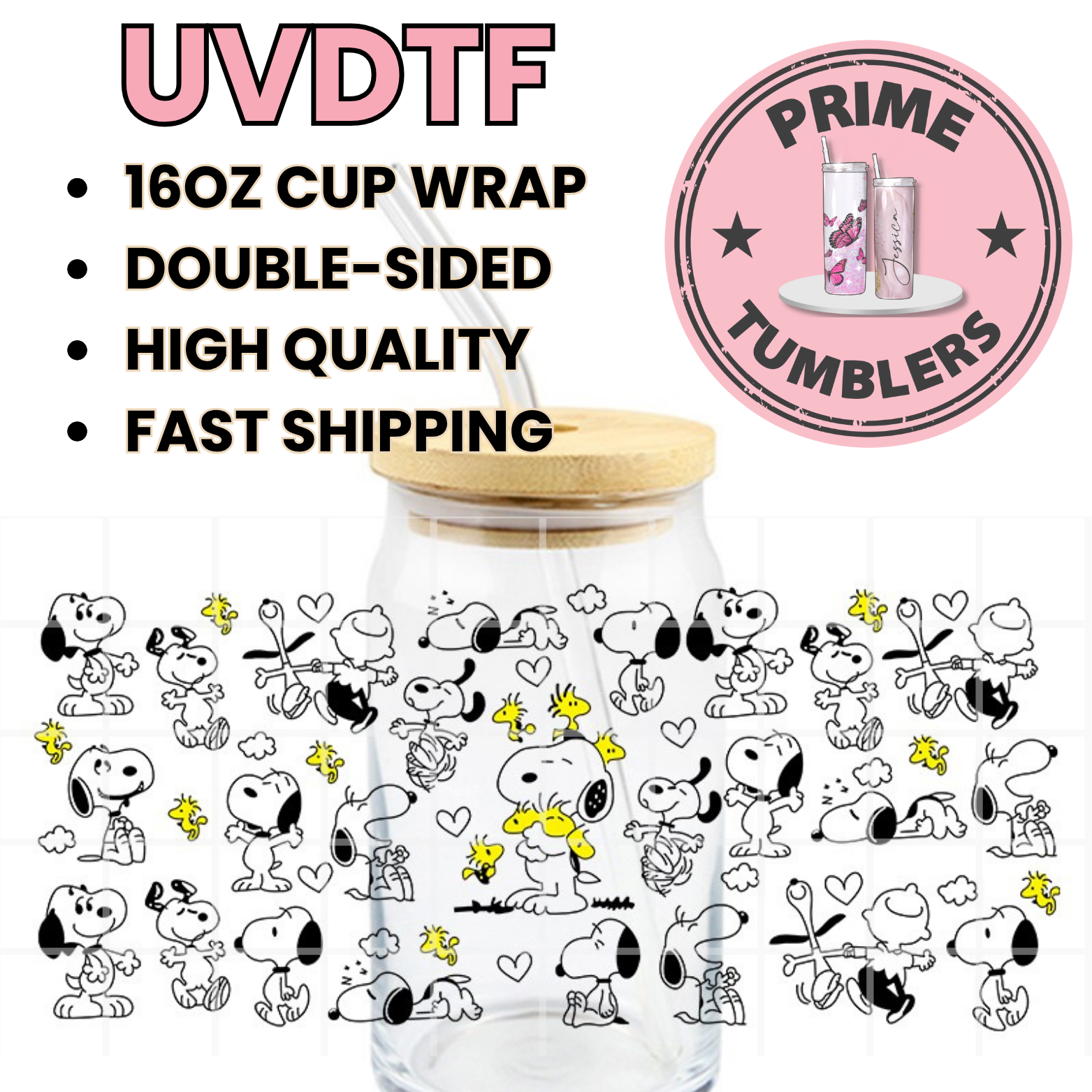 SNOPPY AND FRIEND 16oz UVDTF cup wrap, ready to apply STICKERS
