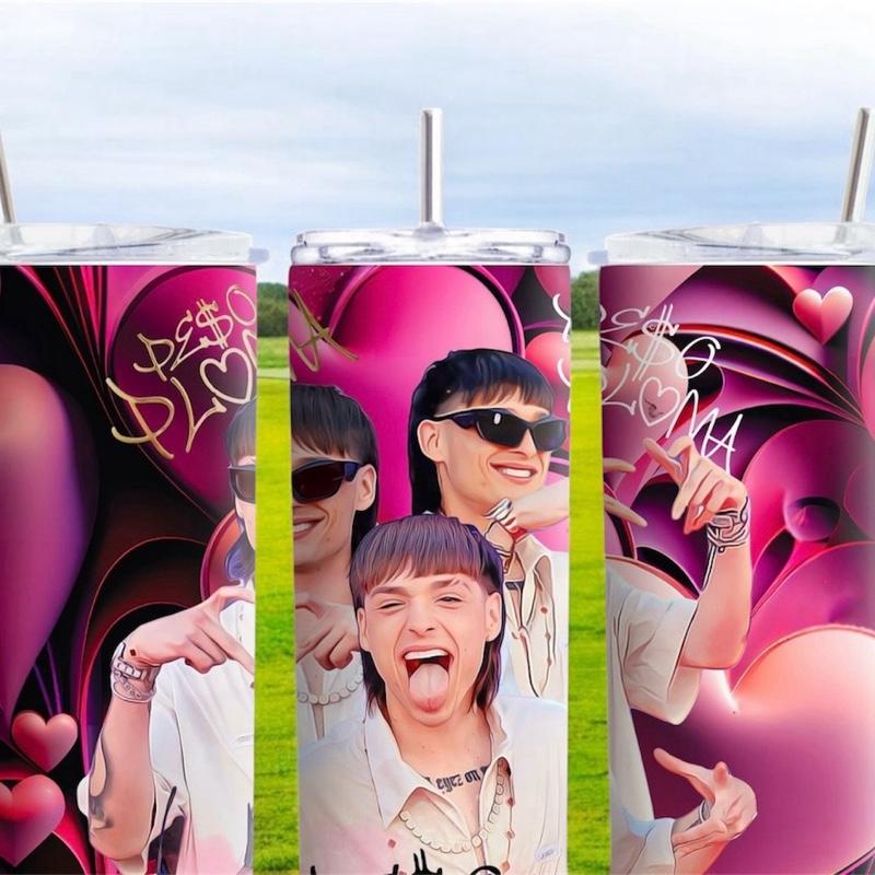 Pink Urban Vibes Tumbler Bold Stainless Steel Cup 20 oz Double Wall Insulated Glossy Finish with Leak Resistant Lid & Reusable Metal Straw Perfect for Music Lovers & Everyday Hydration Peso Pluma