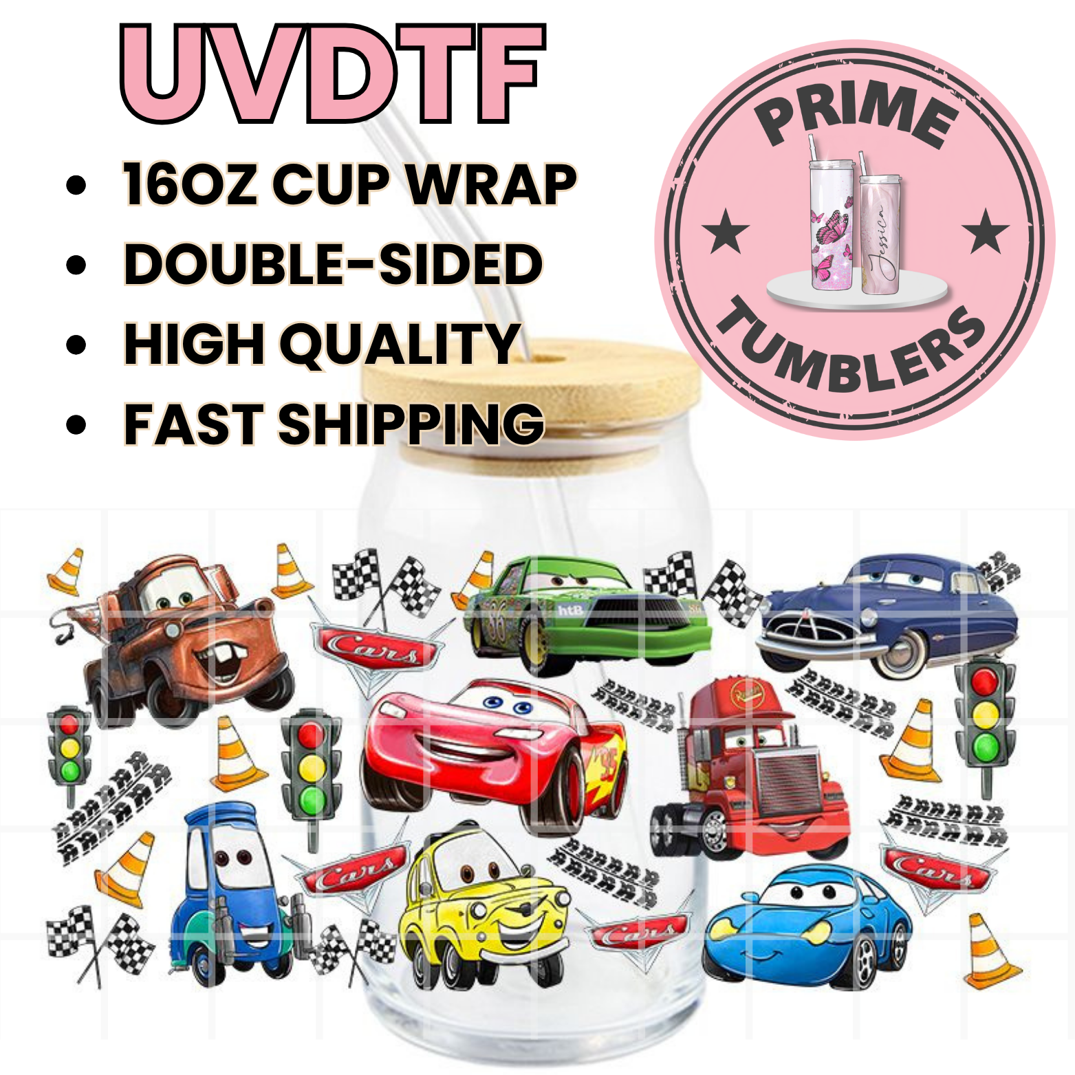 (Copy) Disney/Pixar movie CARS Lightning McQueen, Mater, Doc Hudson, Sally Carrera, Luigi, Ramone 16oz UVDTF cup wrap, ready to apply STICKERS Decals