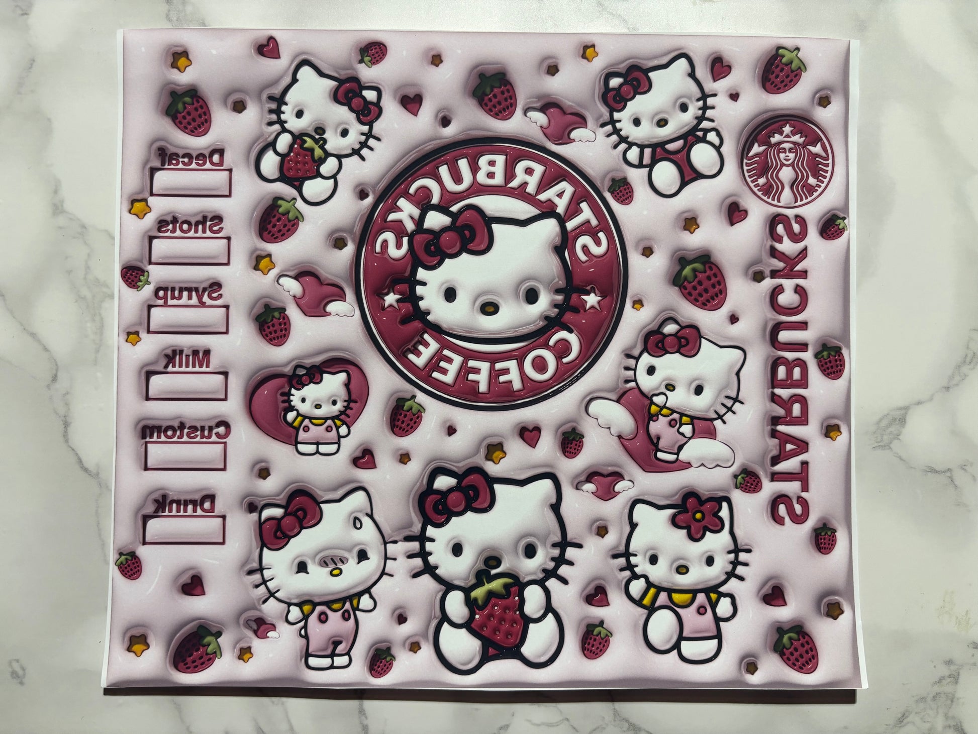 3D Hello Kitty STRAWBERRY sublimation 20oz Print strawberries