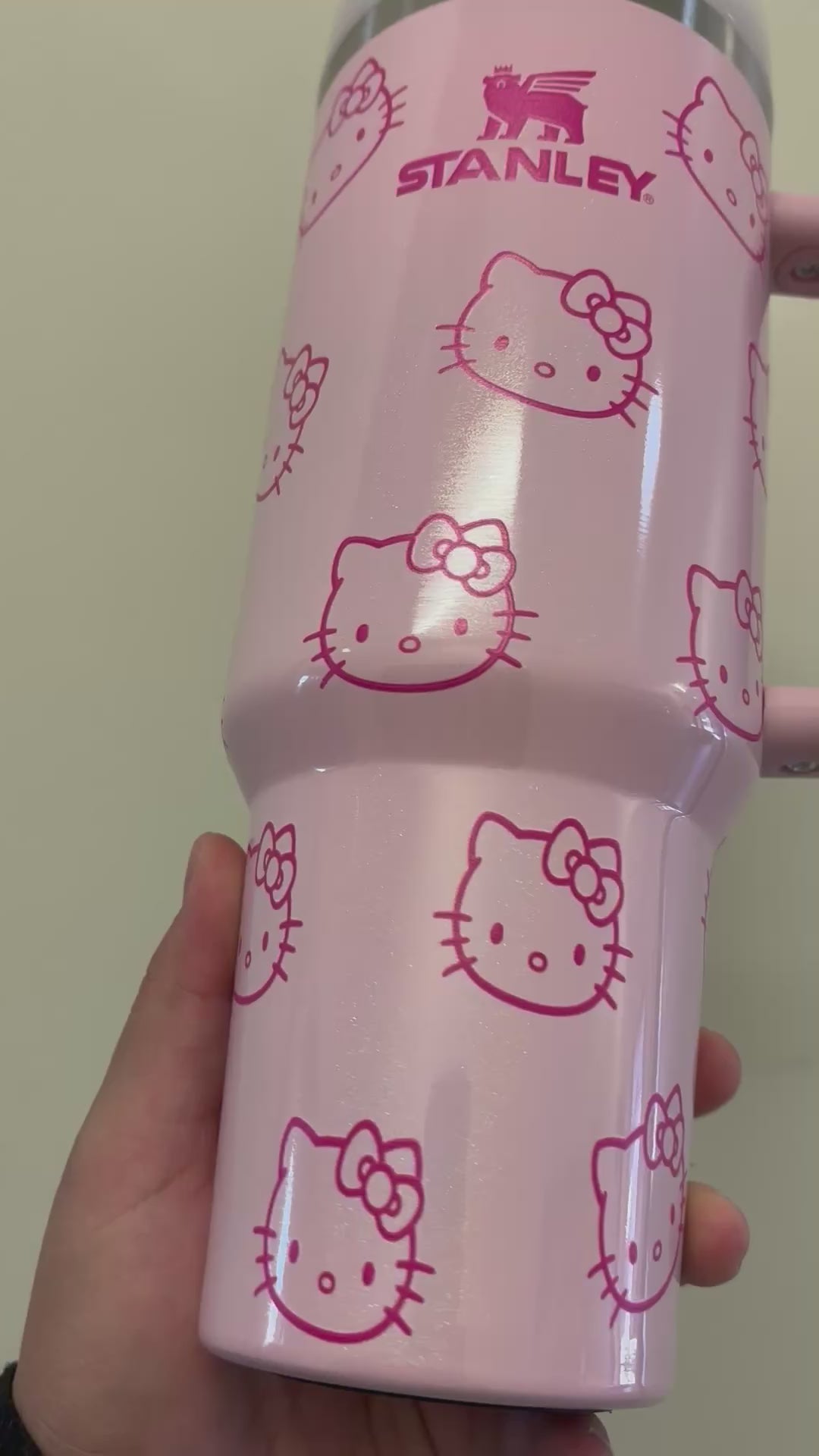 HELLO KITTY pink Shimmer glossy 40oz Tumbler STANLEY Dupe cup HK