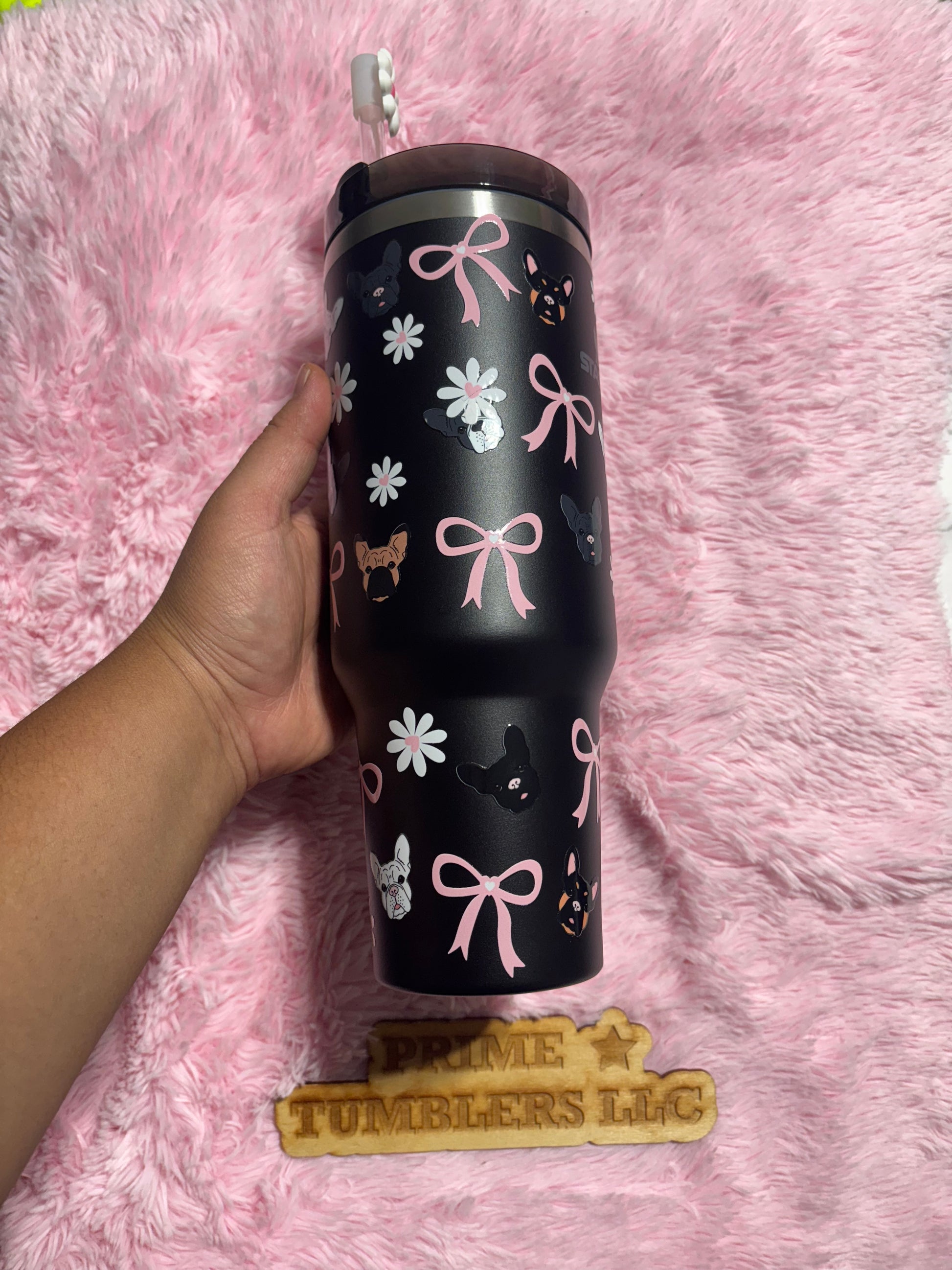 Frenchie Dog BOWS and Flowers 40oz Stainless Steel Tumbler | Stanley Dupe Cup French Bulldog Dog breed
