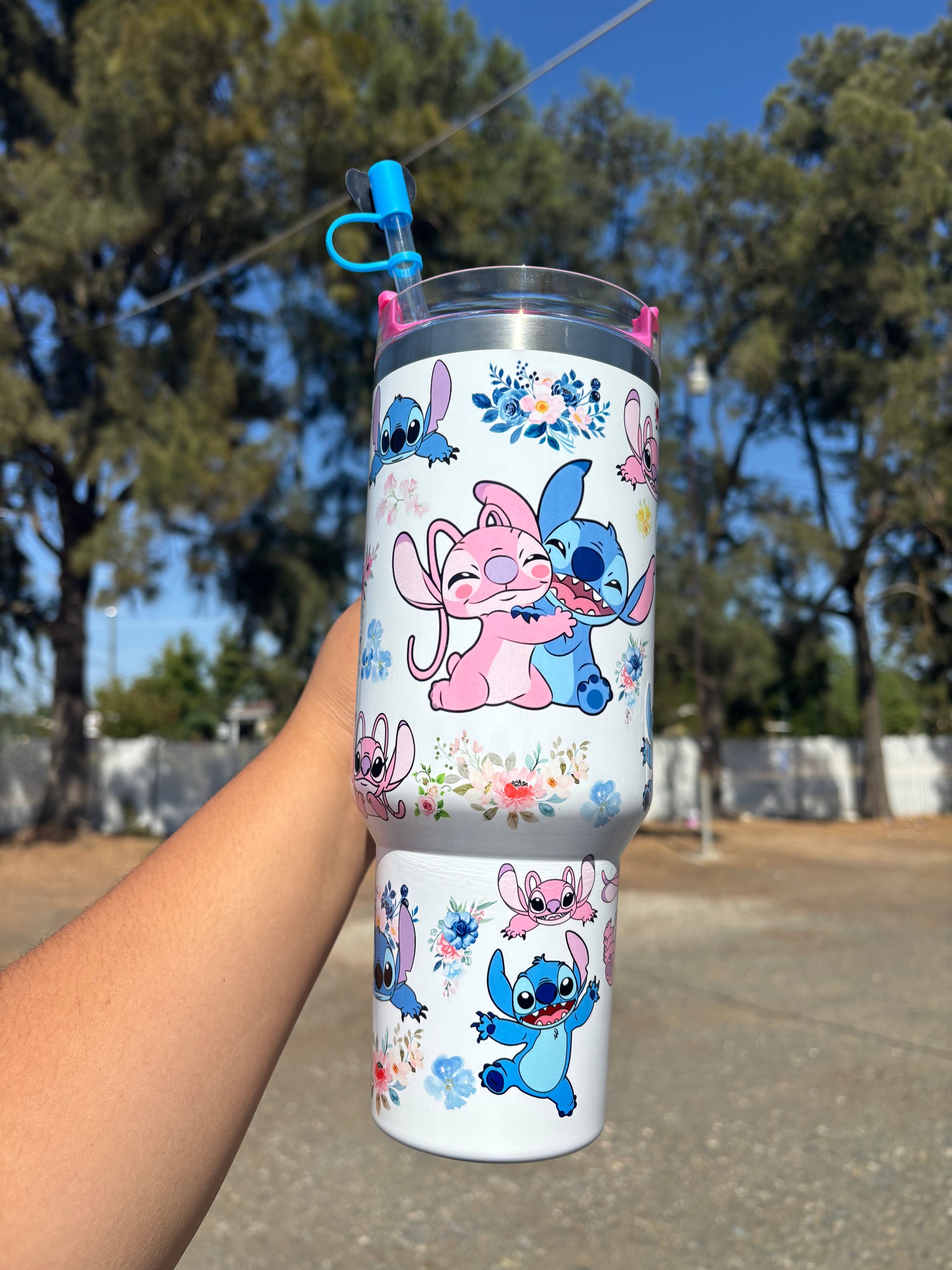 Stitch and Angel pink 40oz Tumbler STANLEY Dupe cup